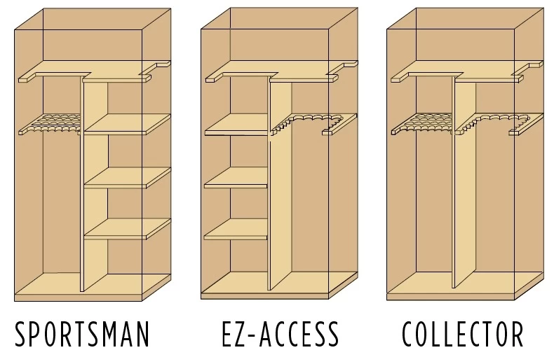 Одно из уникальных отличий данной модели – возможность трансформировать внутренний интерьер сейфа в соответствии с вашими предпочтениями, снимая и переставляя наиболее удобным образом полки и ложементы. Вся внутренняя поверхность изделия целиком отделана мягкой велюровой тканью, что позволяет размещать оружие и ценные вещи с максимальным комфортом.